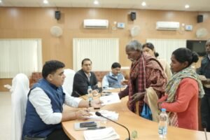जनदर्शन में आज मुआवजा वितरण, सीमांकन, नामांतरण, बटांकन, पेंशन भुगतान, अतिक्रमण व कब्जा हटवाने, पट्टा प्रदान करने, अधूरे निर्माण कार्यों को पूर्ण कराने, राखड़ डंपिंग की समस्या सहित अन्य समस्याओं के कुल 62 आवेदन प्राप्त हुए। कलेक्टर श्री दुदावत ने अधिकारियों को निर्देशित किया कि सभी आवेदनों का प्राथमिकता के आधार पर परीक्षण कर समय-सीमा में निराकरण सुनिश्चित किया जाए, ताकि आमजन को त्वरित राहत मिल सके। इस अवसर पर अपर कलेक्टर श्री देवेंद्र पटेल व ओंकार यादव, शिक्षा, कृषि, आदिम जाति विकास, समाज कल्याण सहित अन्य विभागीय अधिकारी उपस्थित थे।