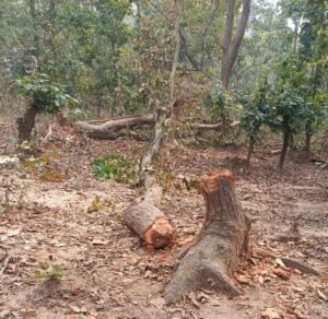 कोरबा//कटघोरा रेंज विभाग चैतमा अंतर्गत सुरका में हरे पेड़ों की कटाई हो गई। वन विभाग के अधिकारियों को भनक भी नहीं लगी।