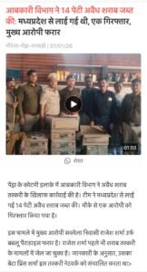 पिछले वर्ष 31 दिसंबर 2025 की रात कोटमी इलाके में आबकारी विभाग की कार्रवाई ने पूरे क्षेत्र में हलचल मचा दी थी। कोटमी कला स्थित “पैराडाइज डेली नीड्स” दुकान से मध्यप्रदेश निर्मित 14 पेटी अवैध शराब जब्त की गई। मुख्य आरोपी राजेश शर्मा उर्फ बबलू फरार बताया गया, जबकि एक सह-आरोपी को गिरफ्तार किया गया।