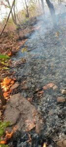 स्थानीय पत्रकार द्वारा खुद जंगल को आग से जलते देख आग को बुझाने का प्रयास किया लेकिन एक अकेला की बस की बात नही इतना आग को बुझाने के लिए।