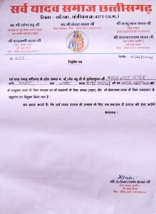 कोरबा// जिले में दिनांक 08 अप्रैल 2026 (रविवार) को सर्व यादव समाज की एक दिवसीय महत्वपूर्ण बैठक आयोजित की गई। इस बैठक में समाज के वरिष्ठ पदाधिकारियों और जनप्रतिनिधियों की गरिमामयी उपस्थिति रही।